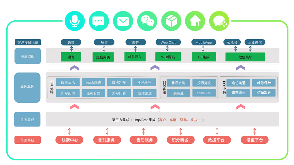 威馬汽車攜手合力億捷打造的“威易聯(lián)系統(tǒng)”,實(shí)現(xiàn)語音、官網(wǎng)、公眾號、企業(yè)微信、短信等全渠道接入。系統(tǒng)覆蓋多業(yè)務(wù)場景,包括售中/售后服務(wù)、E/B/I-Call、推廣獲客、線索跟蹤、戰(zhàn)敗分析等。依靠打通威馬汽車的線索中心、售前服務(wù)、售后服務(wù)、積分商城等系統(tǒng),沖破數(shù)據(jù)壁壘,形成以數(shù)據(jù)驅(qū)動為支撐點(diǎn)的模式,健全服務(wù)營銷體系,提升售后服務(wù)客戶滿意度和線索營銷成功率。
