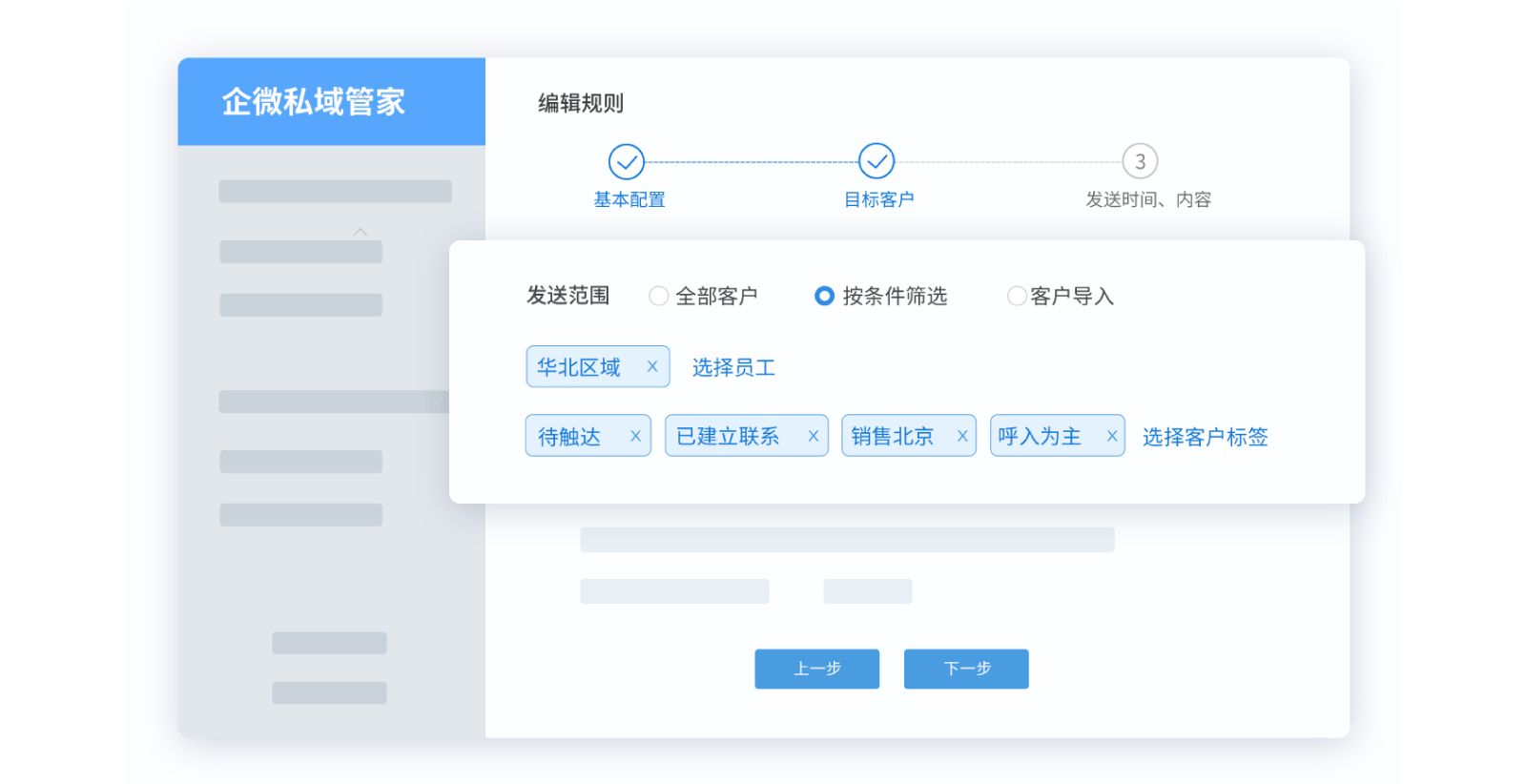 合力億捷基于Socialzed CRM 原有客戶數(shù)據(jù),結(jié)合用戶畫(huà)像標(biāo)簽,通過(guò)條件篩選,將CRM中要觸達(dá)的客戶定位出來(lái)。